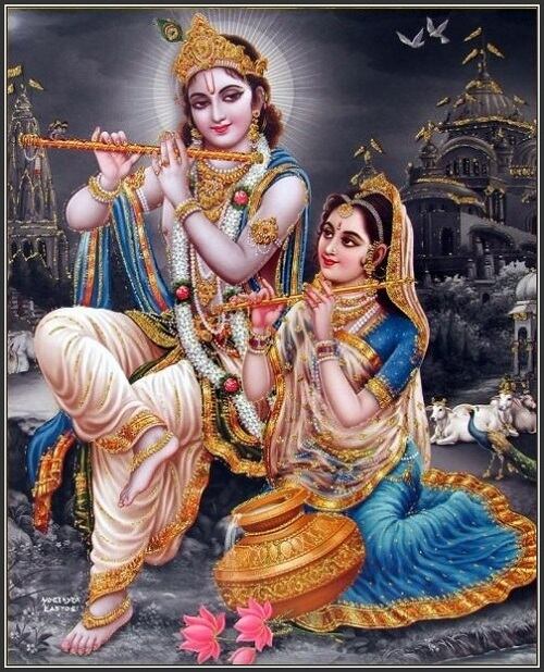 詩人ジャヤデーヴァの物語『ギータ・ゴーヴィンダ』においては、官能的なラーダーとクリシュナの恋を描いています。
